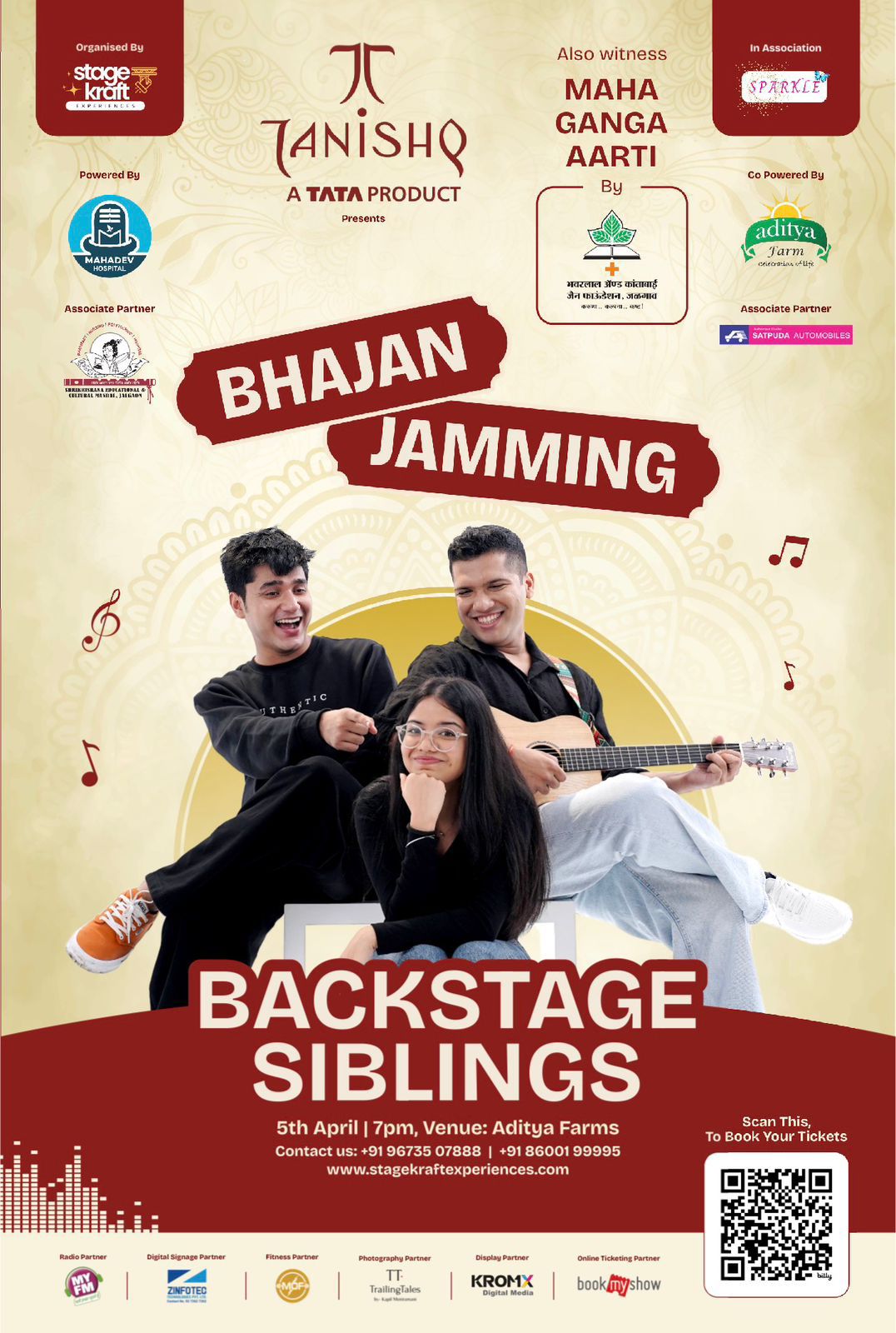 टीम झूलेलाल न्यूज़ जलगांव : एक ‘भजन जैमिंग’ इवेंट—जो शहर के संगीत प्रेमियों के लिए एक विशेष सौगात साबित होने वाला है—आने वाली 5 अप्रैल को शाम 7:00 बजे के लिए निर्धारित किया गया है। इस कार्यक्रम में लोकप्रिय समूह ‘Backstage Siblings’ प्रस्तुति देगा, जो दर्शकों को भक्तिमय माहौल में एक अनोखी संगीतमय दावत पेश करेगा। यह कार्यक्रम आदित्य फार्म्स में आयोजित किया जाएगा, जहाँ आयोजकों का उद्देश्य पारंपरिक भजनों (भक्ति गीतों) को आधुनिक जैमिंग शैलियों के साथ मिलाकर एक विशिष्ट संगीतमय अनुभव प्रदान करना है। कार्यक्रम के हिस्से के रूप में एक ‘महा गंगा आरती’ का भी आयोजन किया गया है, जिससे भक्तिमय माहौल के और भी अधिक गहरा होने की उम्मीद है। इस कार्यक्रम का आयोजन ‘Stage Craft Experiences’ द्वारा किया जा रहा है। इसे Stage Craft के सूरज ज़नवर, यश मंत्री, अनय दमानी और आमिर आहूजा के प्रयासों से, तथा विभिन्न संगठनों और भागीदारों के सहयोग से साकार किया जा रहा है। दर्शकों के लिए ऑनलाइन टिकट बुकिंग की सुविधा उपलब्ध है; कार्यक्रम के पोस्टर पर प्रदर्शित QR कोड को स्कैन करके टिकट आरक्षित किए जा सकते हैं। आयोजकों ने अनुरोध किया है कि जो लोग अधिक जानकारी चाहते हैं, वे निम्नलिखित नंबरों पर उनसे संपर्क करें: 9673507888 या 8600199995। नागरिकों को इस कार्यक्रम में बड़ी संख्या में शामिल होने के लिए सादर आमंत्रित किया जाता है, ताकि वे भक्ति और संगीत के इस सुंदर संगम का अनुभव कर सकें। Post navigation श्री संत गुलाब बाबा महाअमृत महोत्सव वर्ष ३७ वा तथा श्री संत अवलिया उत्तम बाबा महानिर्वाण महोत्सव उत्साह के साथ संपन्न जलगांव नगर पुलिस की अपराध जांच टीम का सराहनीय कार्य, लगातार चोरी करने वाले चोर गिरफ्तार