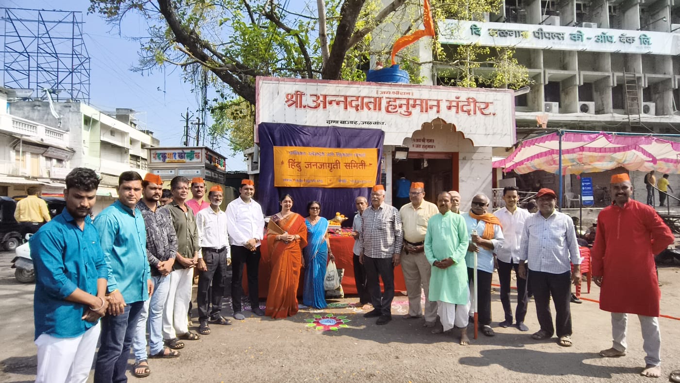 टीम झूलेलाल न्यूज़ जलगांव : आज, श्री हनुमान जयंती के शुभ अवसर पर, जिले के शहरी और ग्रामीण दोनों क्षेत्रों में स्थित कुल 40 श्री हनुमान मंदिरों में ‘गदा पूजन’ समारोह आयोजित किए गए। दिन की शुरुआत सुबह 6:00 बजे पंचमुखी हनुमान मंदिर में ‘जलमोत्सव’ (जल उत्सव) समारोह के बीच आयोजित ‘गदा पूजन’ समारोह से हुई, जिसमें बड़ी संख्या में भक्तों ने भाग लिया। इसके बाद, दानाबाजार स्थित श्री अन्नदाता हनुमान मंदिर में एक समारोह आयोजित किया गया, जिसमें भाजपा की प्रदेश सचिव श्रीमती भैरवी पालंदे, दानाबाजार व्यापारी संघ के अशोकजी धूत, पार्षद विजय बंदल, राजेंद्र पांडे और दिनेश तिवारी, हिंदू जनजागृति समिति के निखिल कदम, तथा भाजपा युवा मोर्चा के हर्षल सिखवाल उपस्थित रहे। श्रीराम पेठ स्थित हनुमान मंदिर में भी ‘गदा पूजन’ किया गया—जिसका प्रबंधन असोदा की ‘जागृत देवस्थान समिति’ करती है—जहाँ 400 से अधिक भक्त उपस्थित थे। इसी प्रकार, श्रीधर नगर स्थित जागृति हाउसिंग सोसाइटी, सुप्रीम कॉलोनी, चौगुले प्लॉट, छत्रपति शिवाजी महाराज नगर, अयोध्या नगर, भोईटे नगर, खोटे नगर, MIDC, और पिंप्राला स्थित अष्टविनायक माता मंदिर सहित विभिन्न स्थानों पर ‘गदा पूजन’ समारोह आयोजित किए गए; इसके अतिरिक्त, यावल, चोपड़ा, धरनगाँव, एरंडोल और पारोला कस्बों में भी इसी तरह के कार्यक्रम आयोजित किए गए। Post navigation युवा ‘भवानी’ ने पालधी निवासियों का ध्यान आकर्षित किया; प्रतापराव पाटिल भी पारंपरिक ‘पचपावली’ नृत्य में शामिल हुए विधायक अमोल जावले के निर्देशों के बाद तुरंत किसानों के खेतों तक पहुँचा